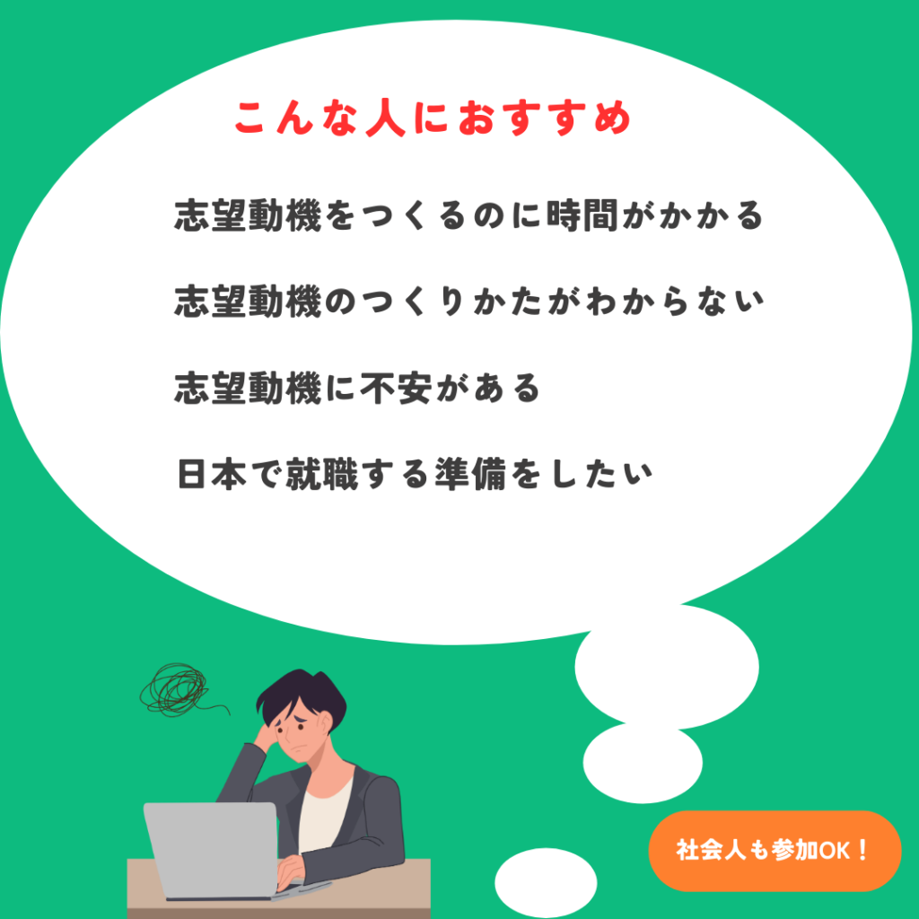 ・志望動機に不安があるぜひ参加してください!無料です。