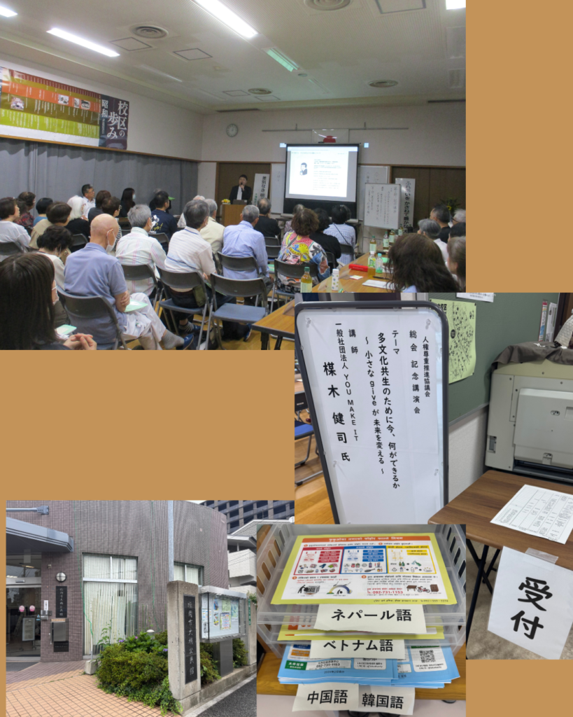 【お知らせ/活動レポート】2025年6月14日(土)、大楠公民館にて開催された人権尊重推進協議会主催の総会記念講演にて、当団体代表理事が登壇いたしました 投稿日: 2025年6月20日2025年6月20日 投稿者: YOUMAKEIT 6月14日(土)、大楠公民館にて開催された人権尊重推進協議会主催の総会記念講演会に、当団体代表理事が登壇いたしました。講演テーマは「多文化共生のために今、何ができるか〜小さなgiveが未来を変える〜」。当日は約50名の地域住民の皆さまにご参加いただき、多文化共生社会の実現に向けた日々の小さなアクションについて共に考える時間となりました。熱心に耳を傾けてくださった皆さま、そしてこのような貴重な機会をくださった関係者の皆さまに、心より感謝申し上げます。