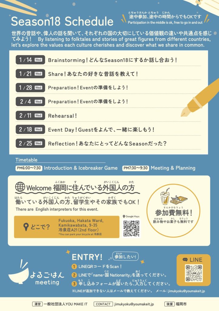 Now Recruiting Participants for Yorugohan meeting Season 18