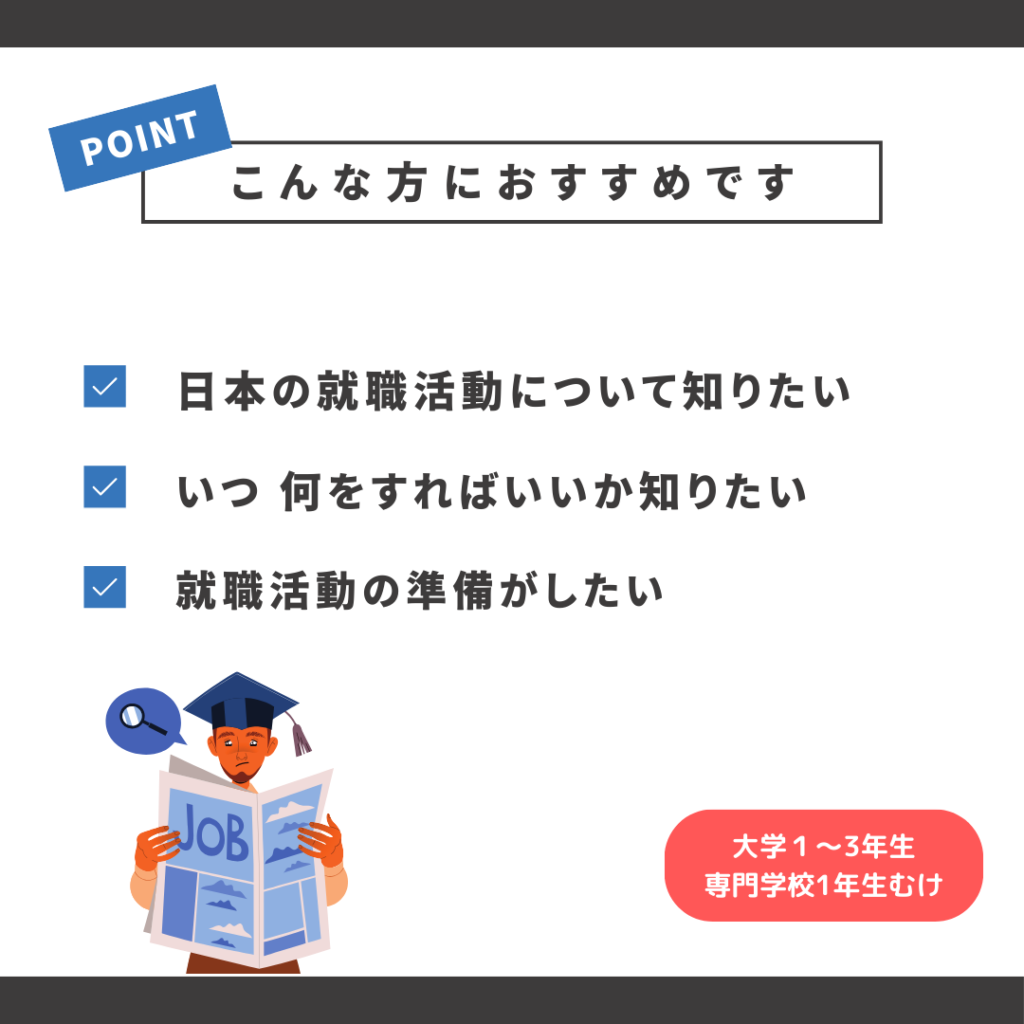 日本の就職活動の進め方や、スケジュールについて知りたい!という人は、ぜひ参加してください。